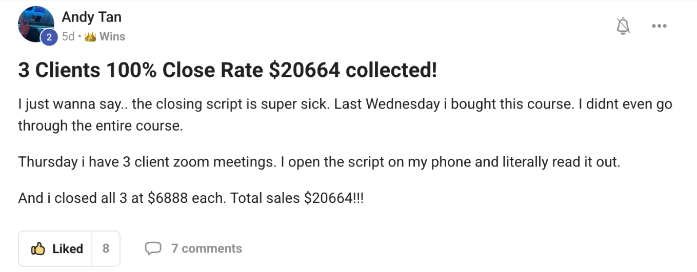 In those recordings you will see ME & MY TEAM close 30+ clients for $6500… $7500… $9800… and you’ll even see me closing a client for $19,000 on ONE CALL!